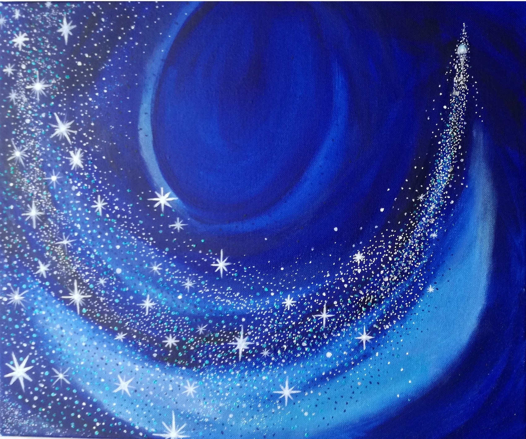 toile féérique 38 x 46 cm vernie et prête à suspendre, pour les amoureux du bleu et des étoiles