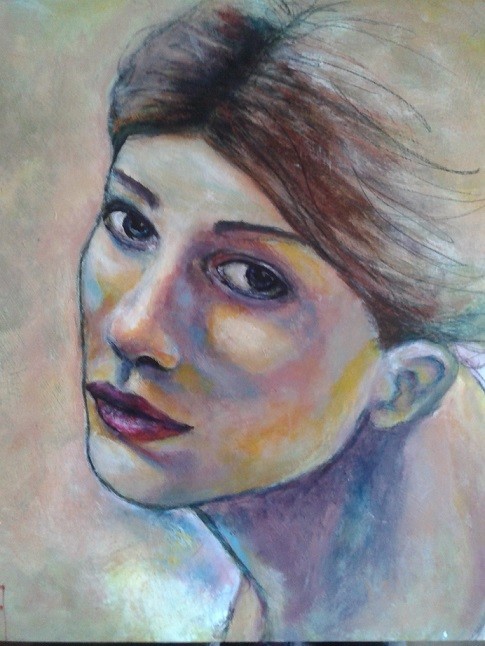 Des yeux que l'on aimerait embrasser tant ils sont doux et beaux ,des couleurs plus affirmées pourtant j'ai reconnu indiciblement votre travail, une position de visage plus romantique , j'adore cette toile superbe!!