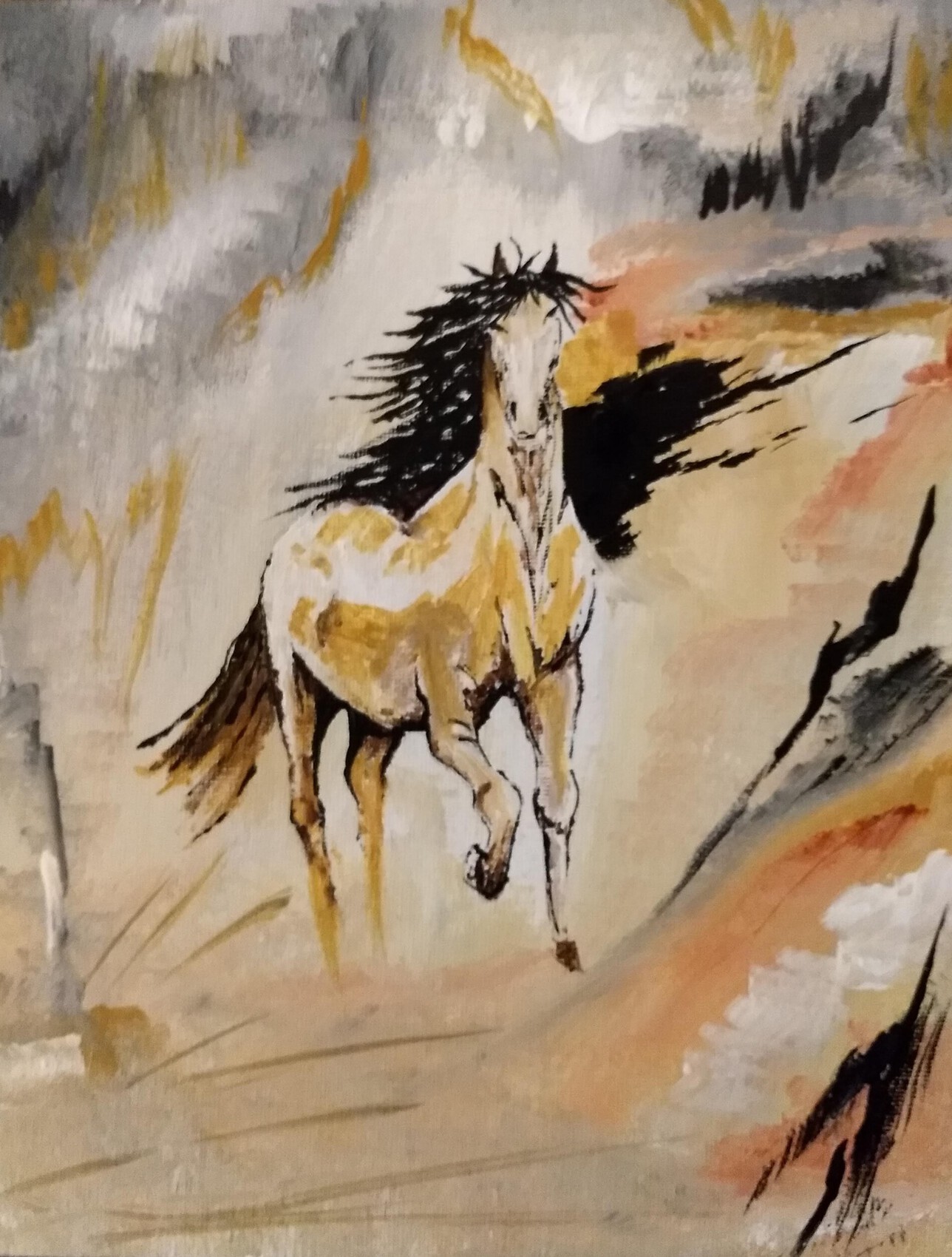 Cheval réalisé en acrylique sur carton entoilé 24*30
