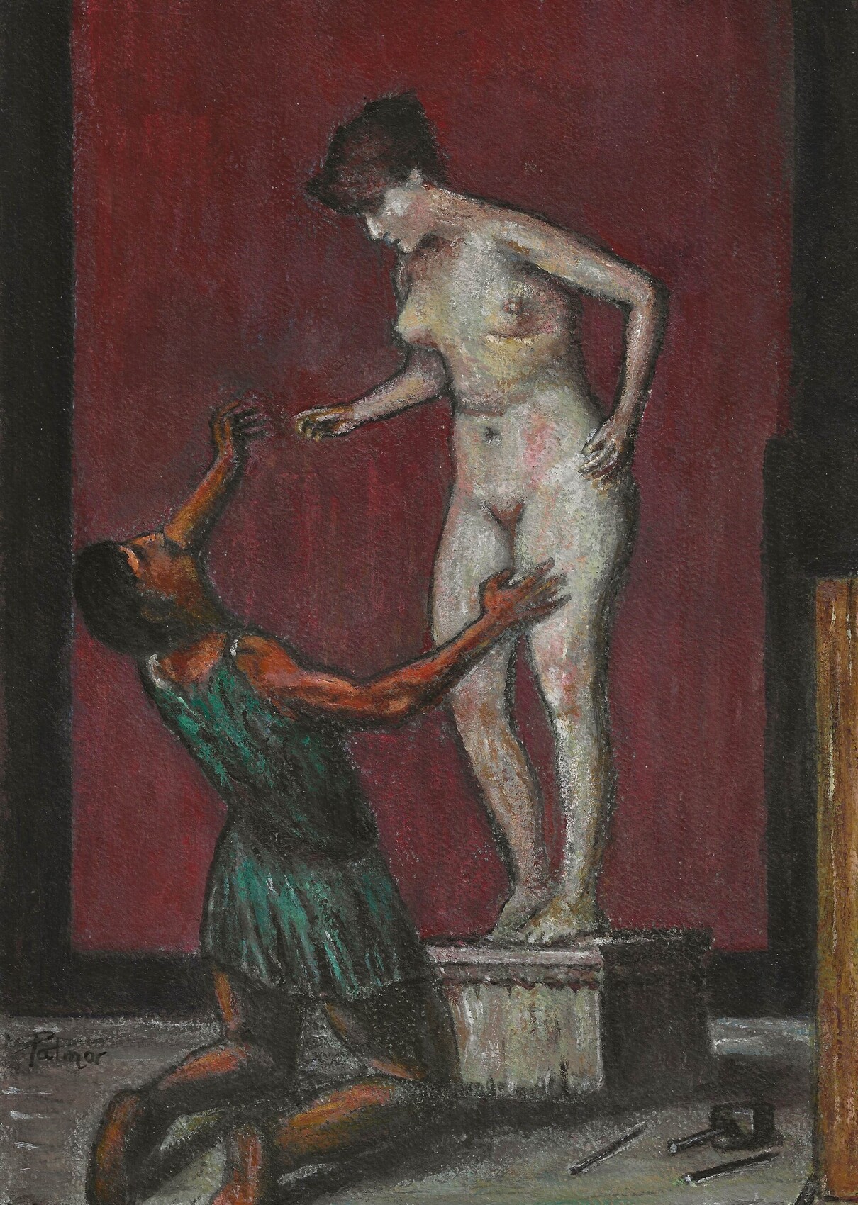Acrylique sur papier dessin 6 avril 2024 d'après l'œuvre de Franz von Stuck