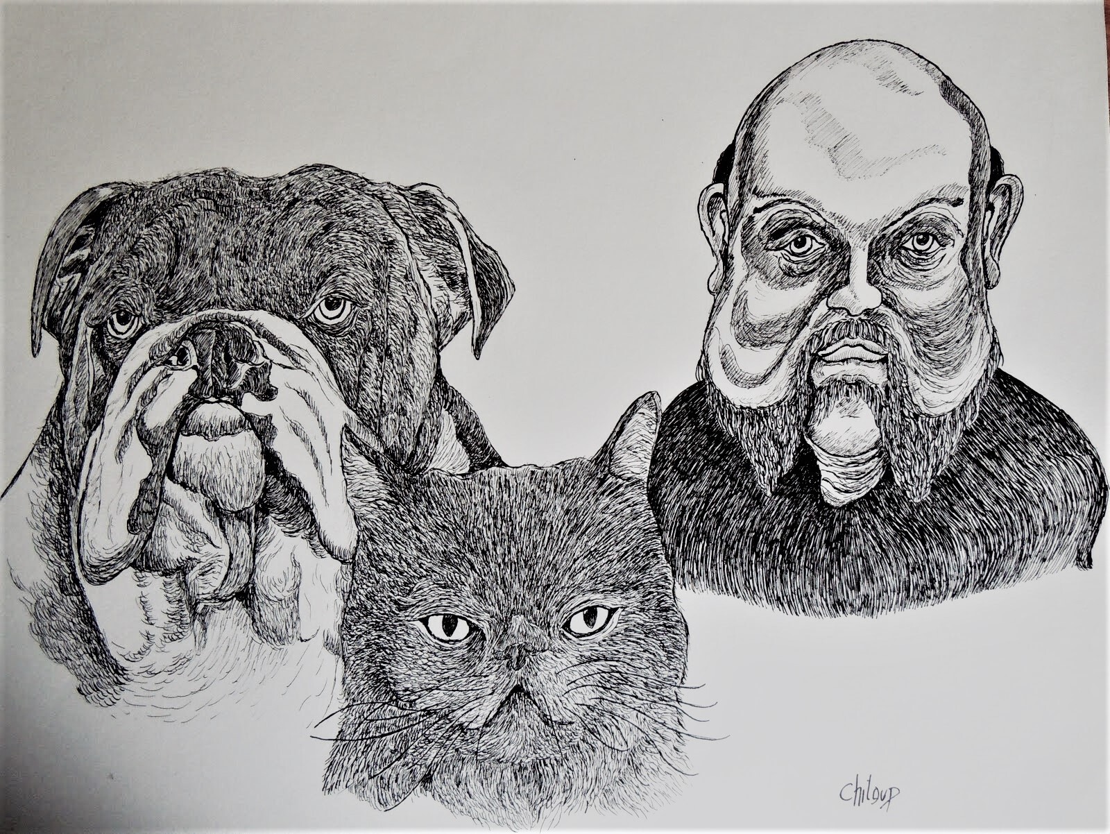 Dessin à la plume sergent major et à l'encre de Chine Format 30 X 40