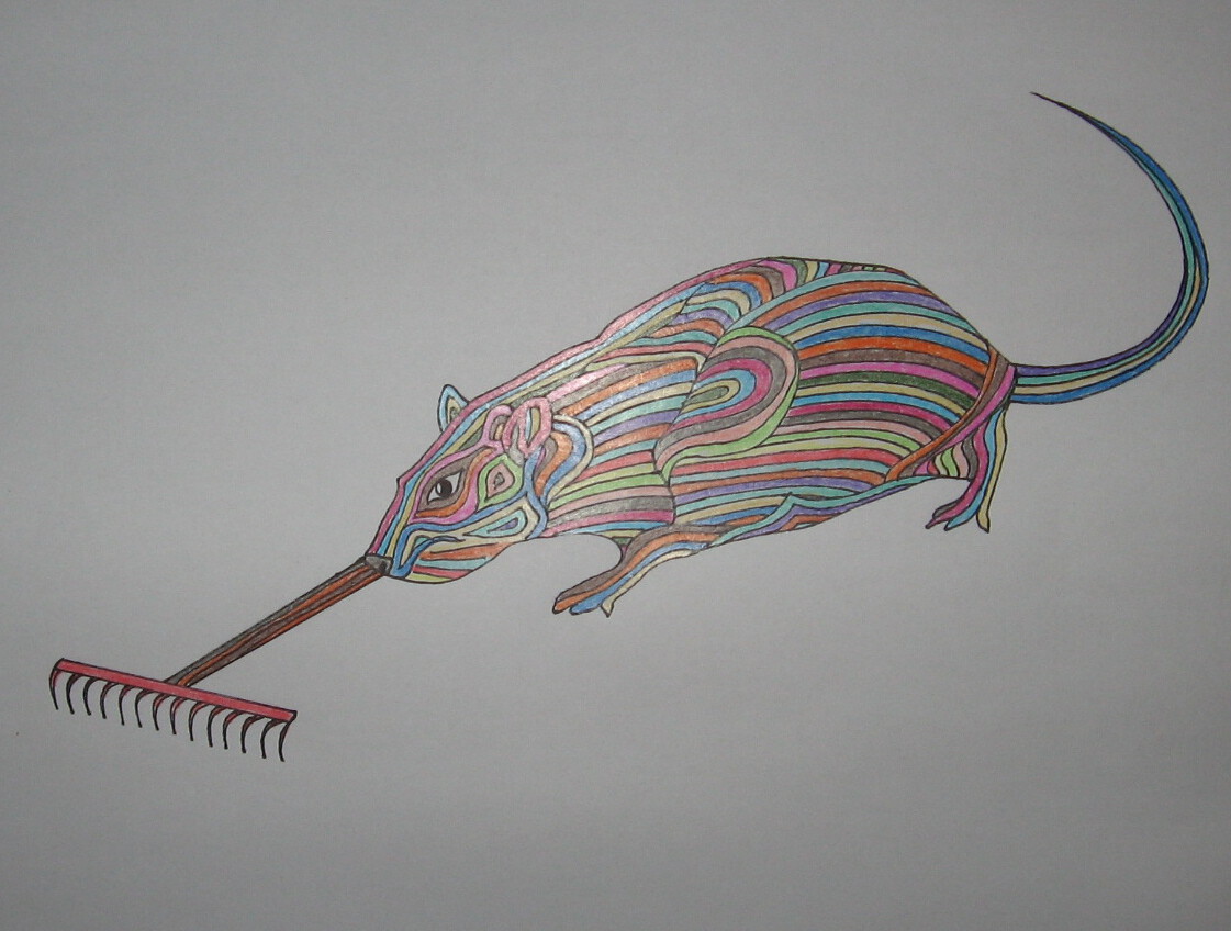 Dessin au crayon de feutre noir et crayons de couleurs.