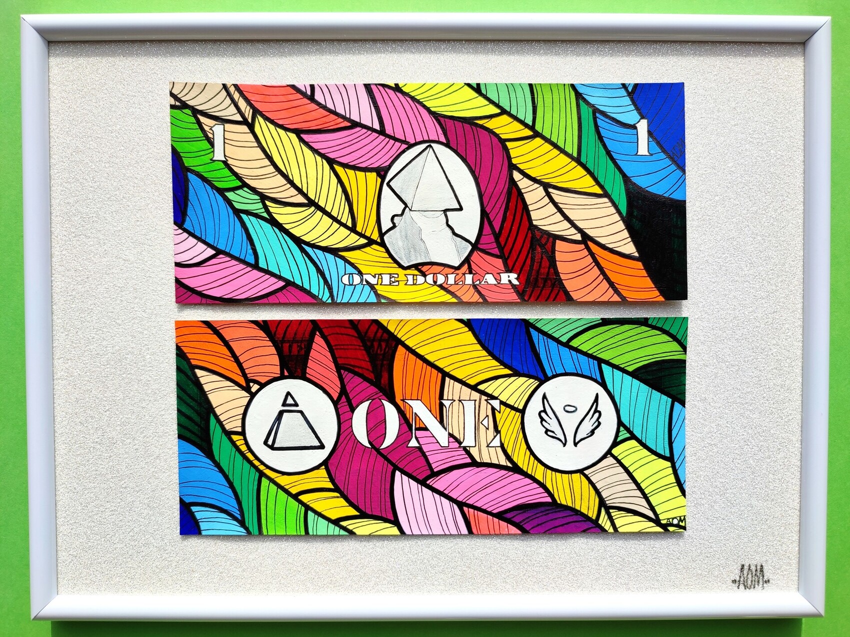 L'idée était de peindre l'avant et l'arrière en totalité de deux vrais billets de banque de 1 dollar américain avec un motif simple et très coloré -Jai utilisé les feutres peinture acrylique POSCA -Cadre blanc -18,5 CM × 25 CM -CERTIFICAT DAUTHENTICITÉ -Envoi rapide et soigné -UN SEUL EXEMPLAIRE DISPONIBLE -DAUTRES PHOTOS, VIDÉOS ET CRÉATIONS SONT DISPONIBLES SUR INSTAGRAM :arts_of_monkey