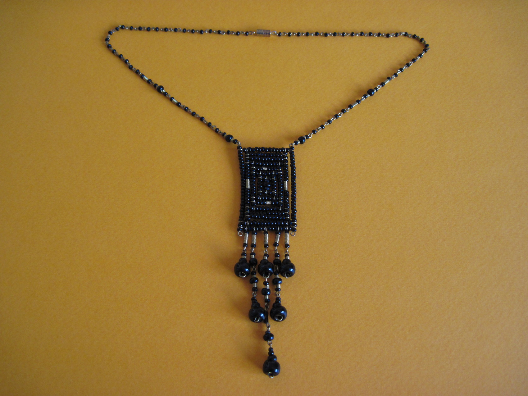 Collier en perles de verre et métal.