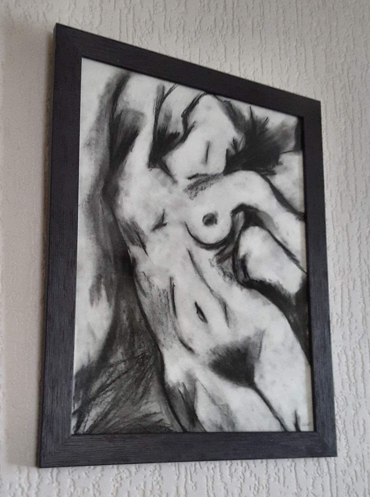 Dessin au fusain sur feuille canson Cadre gris anthracite