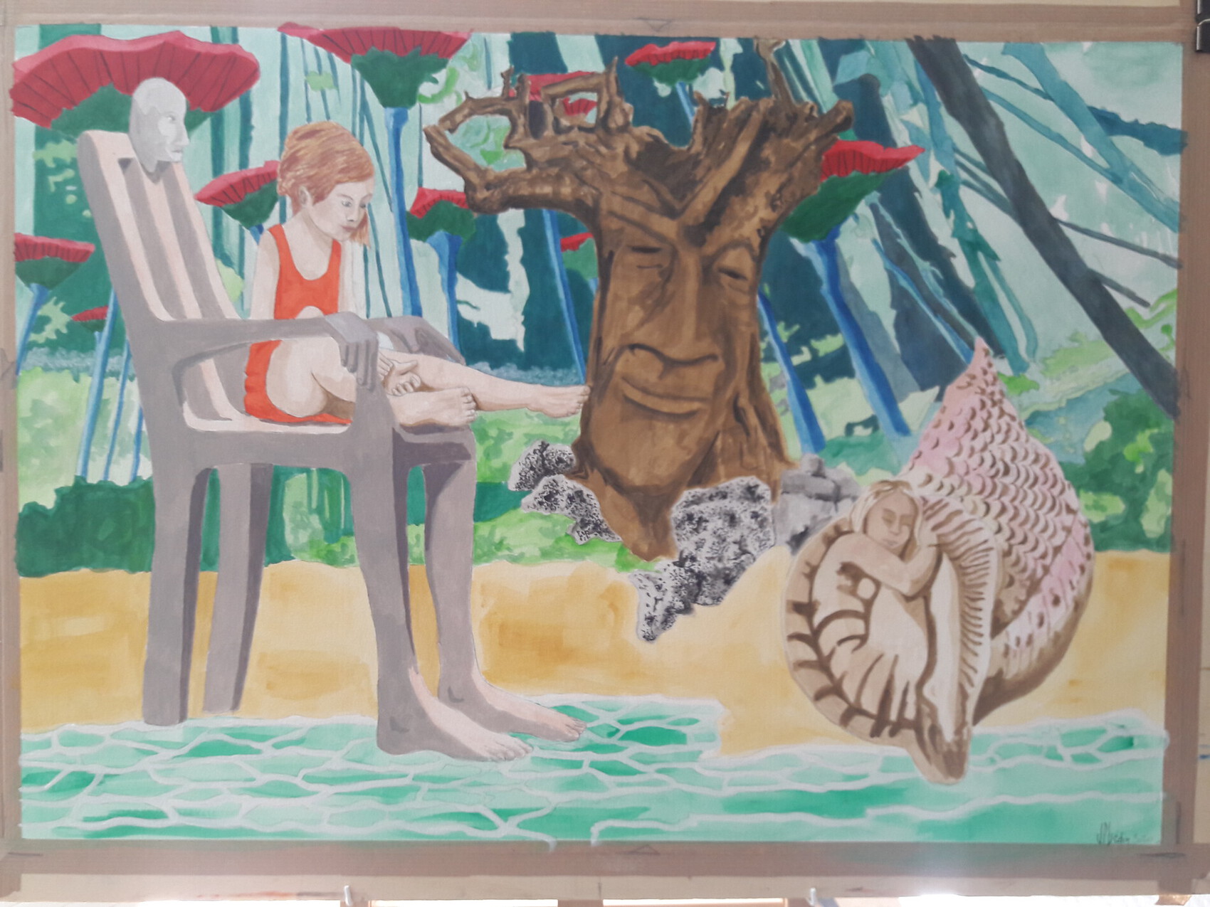 une petite fille dans un fauteuil vivant,rêve de mer,de coquillage enfantant,d'arbre qui dort dans une foret imaginaire