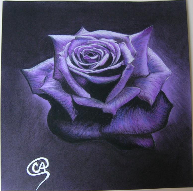 Rose violette réalisée au pastel sur papier Canson couleur violet.