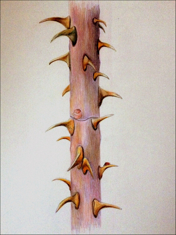 Quel raffinement dans l'exécution de ce dessin original!!!! douces couleurs pour compenser l'agressivité des épines ? bravo Marie bonne journée à vous