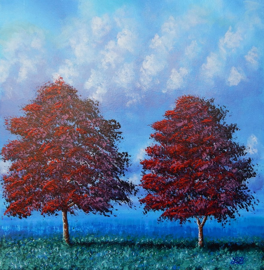Rouge bleuté acrylique sur toile de Bruno Lemasson 40x40 cm non encadrée réf n°:130901 Rouge bleuté nous invite à un moment d'évasion, de détente et de poésie. Entrez dans un univers où la nature est reine, où les arbres sont des personnages qui vous content des histoires. Bienvenue dans ce monde féérique, fantastique, méditatif, envoutant, d'ombre et de lumière, de contrastes, de spiritualité et de sensualité.