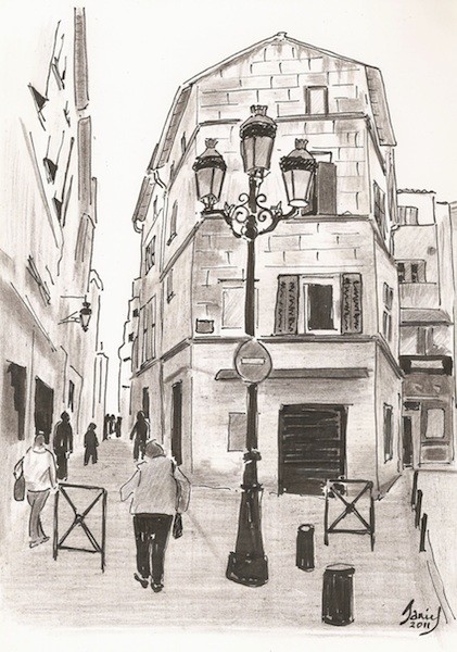 Belle perspective de la petite ruelle pietonne et montante, entre les bâtiments qui lui permettent sans doute de "rester au frais" à la belle saison. Un beau travail ici aussi. Bonne journée.