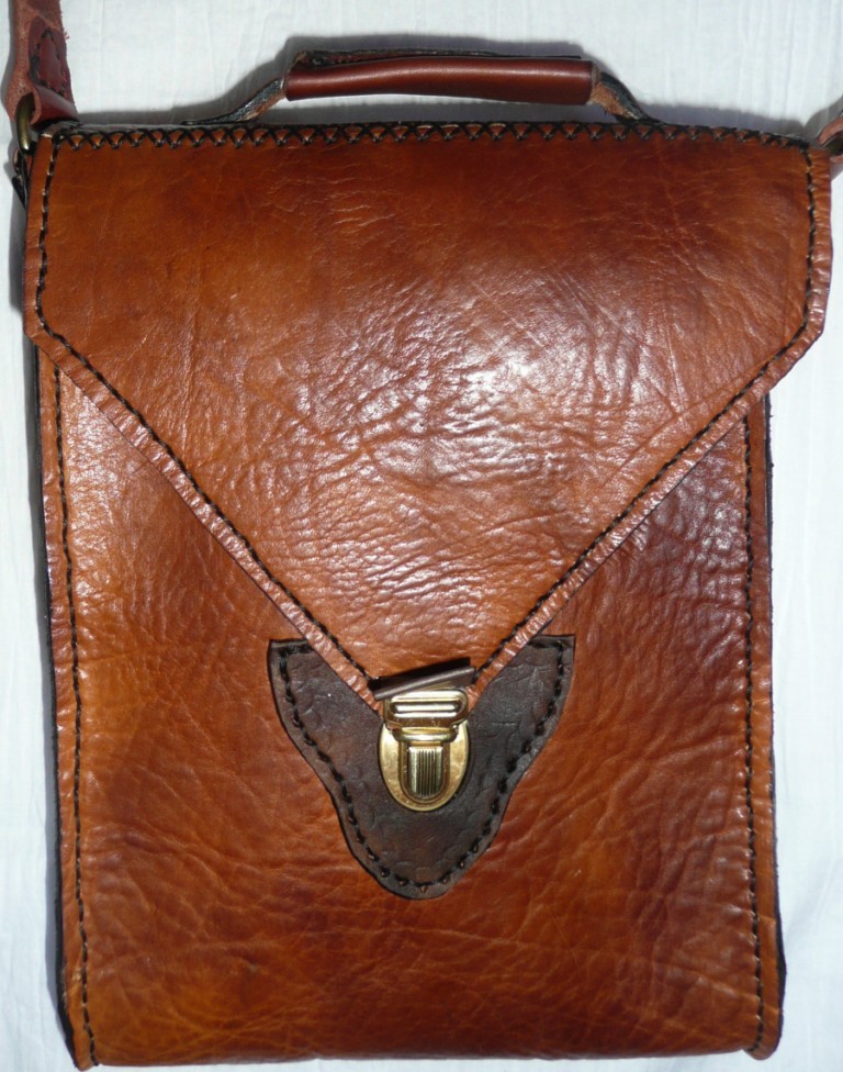 Sacoche homme tout cuir, deux tons fermeture tuck dim 250/200/70