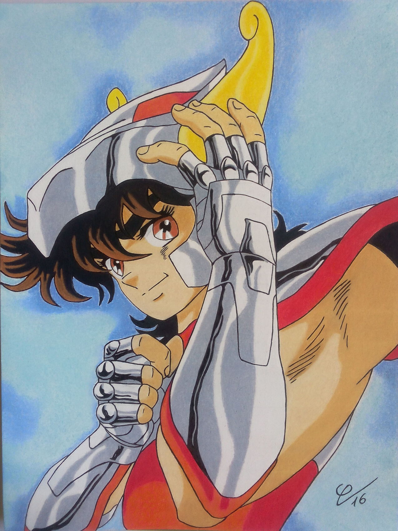 Dessin de Seiya , chevalier Pegase réaliser aux crayons polychromos et aux pastels. dimension 24X32 cm, vendu avec son cadre . envoi rapide et soigné . instagram : Blondin76_31