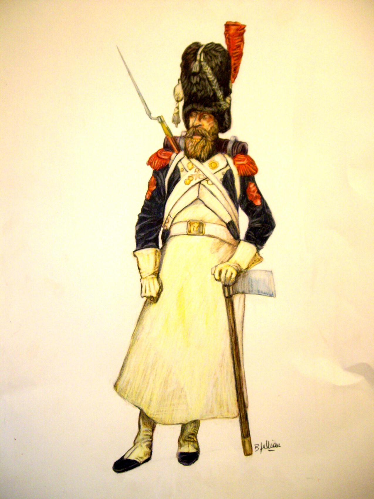 Barbe, hache, tablier de cuir, gants à crispin, pas de doute c'est un sapeur! Notons que tous ces éléments se retrouvent dans l'uniforme des sapeurs de la Légion Etrangère. Bravo!