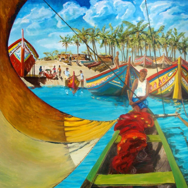 N°0357 SENEGAL HUILE SUR TOILE 90x90cm Année 2020. Vendu
