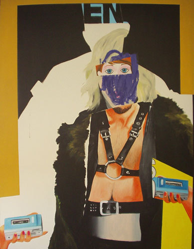 réalisé en Décembre 2004. De la série "Anonimatopée". Mixte sur toile de 146 x 114 cm. D'après collage de 2001. Le fond blanc est le blanc de la toile