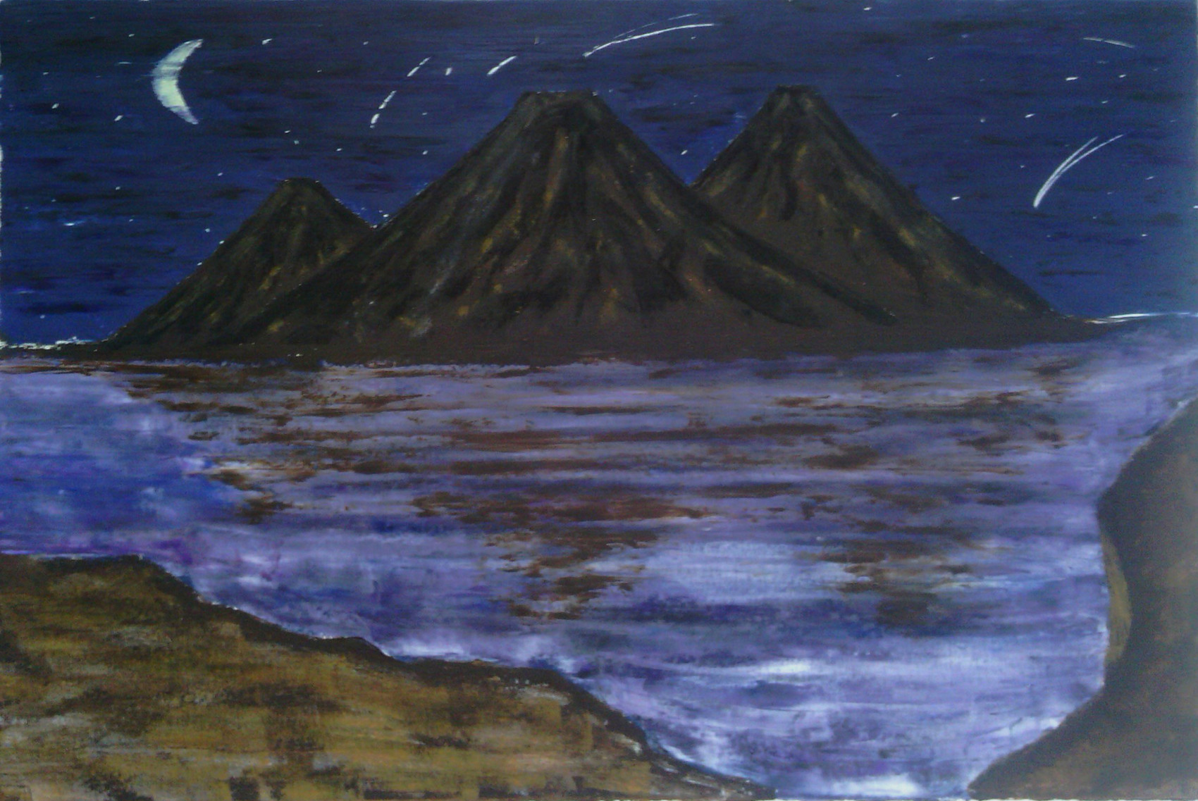 Paysage de volcans de nuit. Huile sur toile 40*60 Octobre 2016