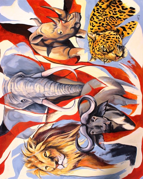très jolie toile de ces cinq magnifiques animaux :)