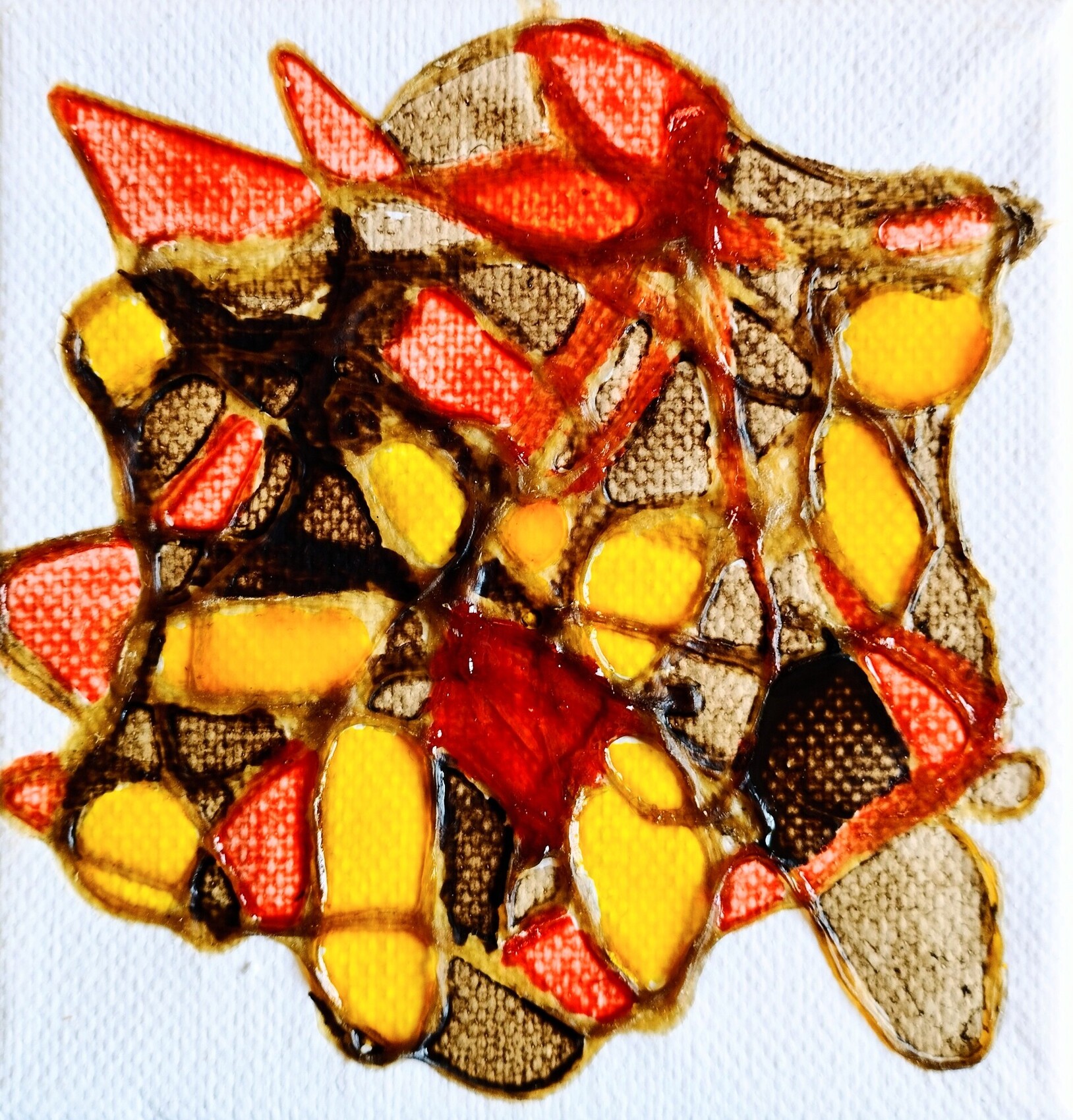 Mini tableau 10 x 10 boyaux sur toile encre. Le 13/05/2023.