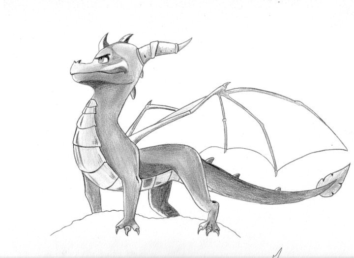 Le fameux heéro des jeux vidéo. Spyro le dragon dessiner au crayon HB