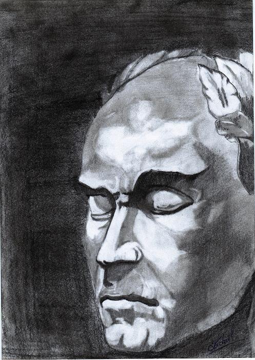 Ce dessin laisse perplexe, d'abord on s'attendrait à lire statue grecque. Ensuite, on reconnait à peu près le masque de Beethoven, qui n'est pas grec?