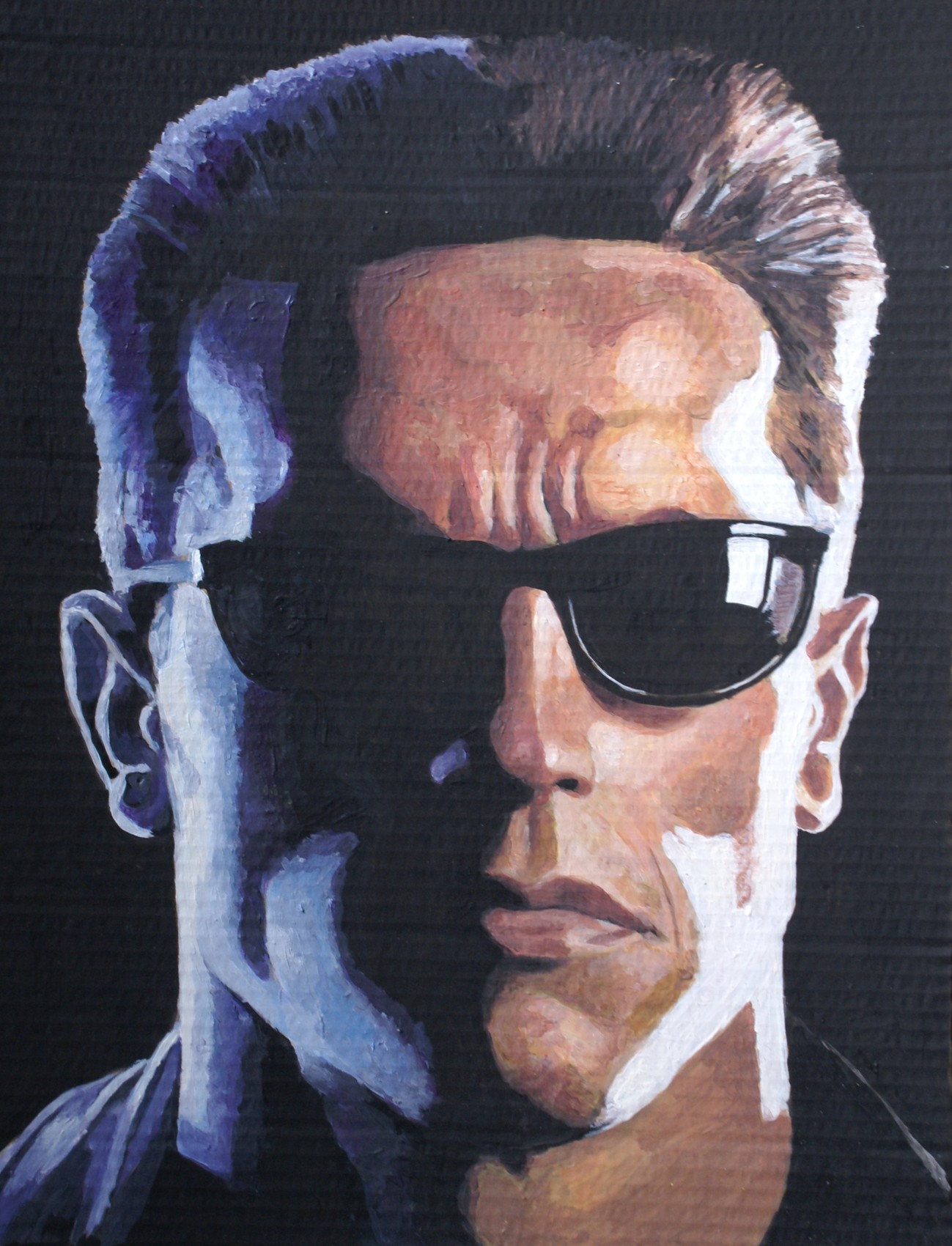 Peinture évocation des années '90, un style de cinéma disparu; des personnages qui ont servi de modèles à des générations. Des héros qui incarnaient la force, la confiance en soit, l'indestructibilité utopique de l'homme moderne. Ces mythes métropolitains sont loin de notre réalité contemporaine, faite d'insécurités et de craintes sur le monde de demain.