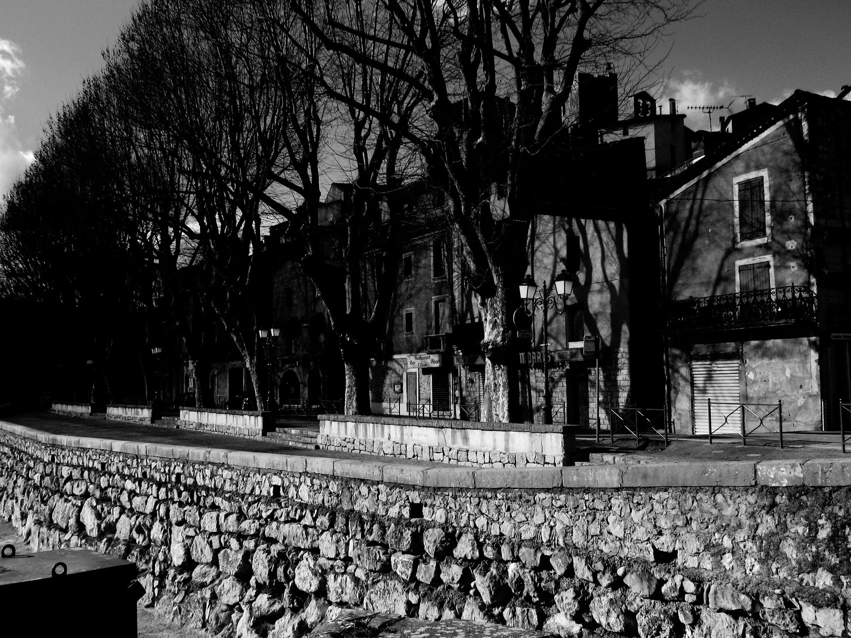 Photo prise à Laroque charment village dans le Languedoc. Ici nous sommes sur les bords du fleuve l'Hérault. Nous pouvons voir l'Avenue des Platanes.