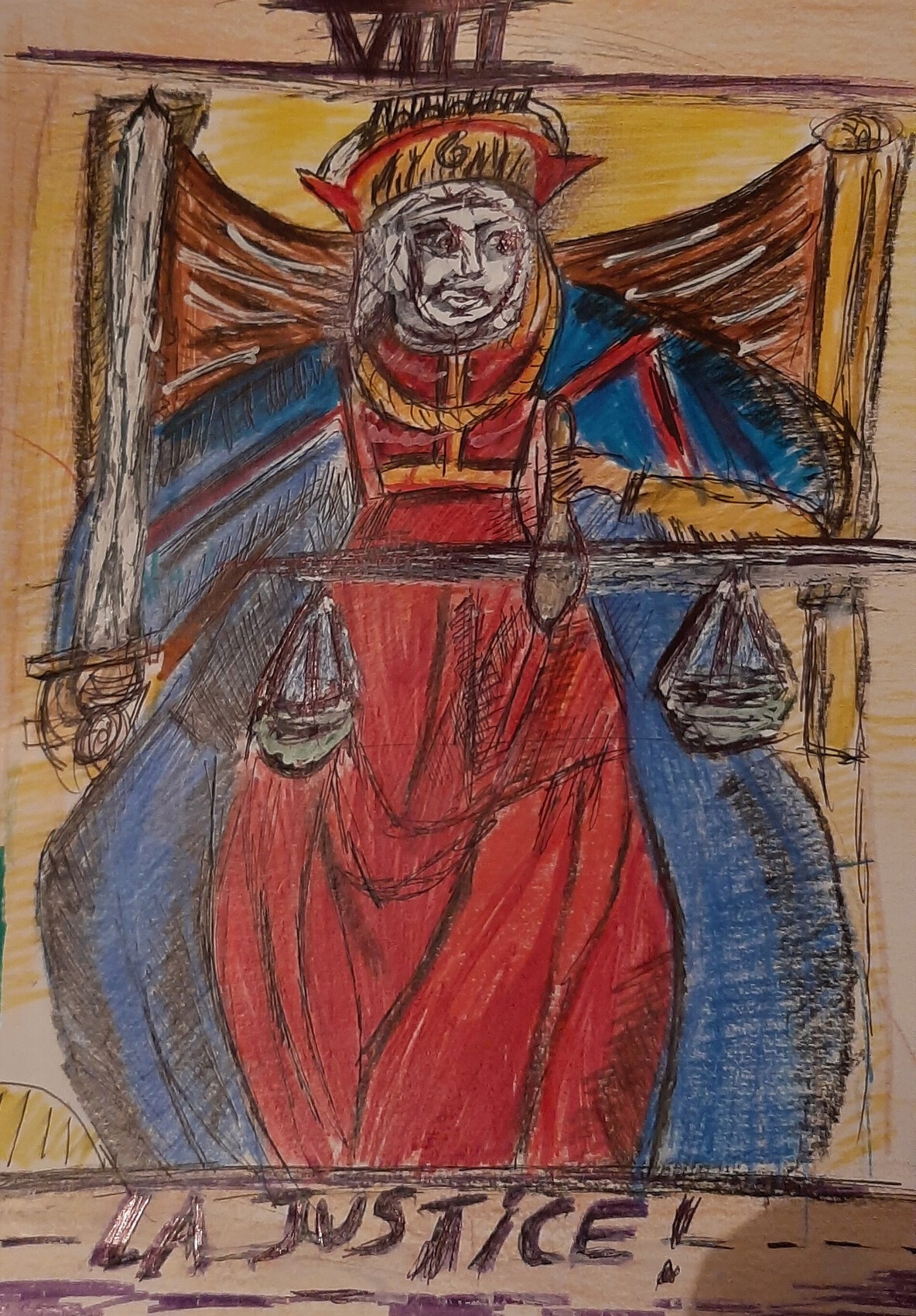 Dans les cartes du tarot, l'incarnation de la justice a un regard droit; Mais la mienne a un regard fuyant comme la justice actuelle..