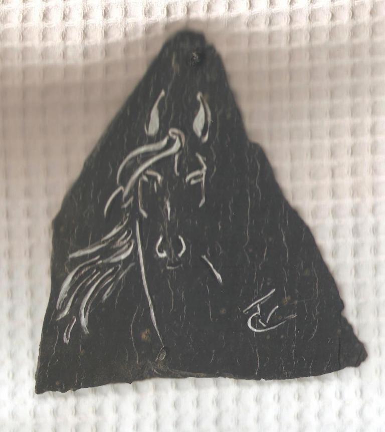 Peinture acrylique sur ardoise - 2013 Petit dessin croqué d'une tête de cheval.