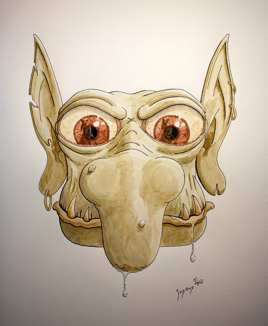 ... ou drôle de tête ... Encre et aquarelle. Sur papier de 30cm sur 40cm.