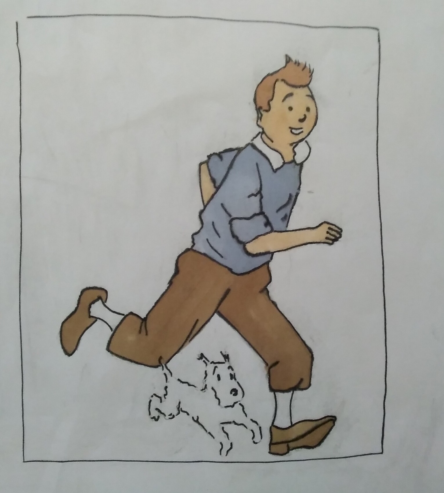 Reproduction d'une illustration d'Hergé au feutre et promarker.