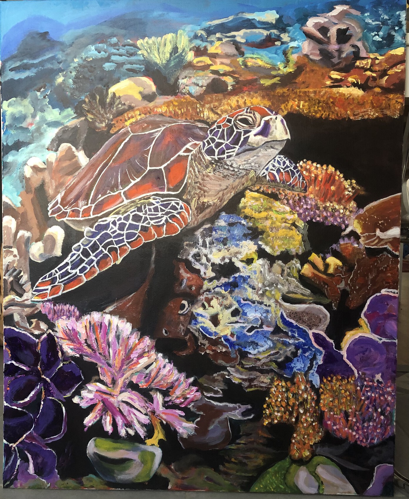 Un joli fond marin coloré pour accompagner cette jolie tortue. Bravo ! ^_^