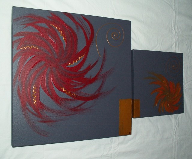 Toiles en 3D (diptyque) moderne de 2011 ne nécessitant pas de cadre Peinture Acrylique. Dimensions : 40/40cm + 30/30cm