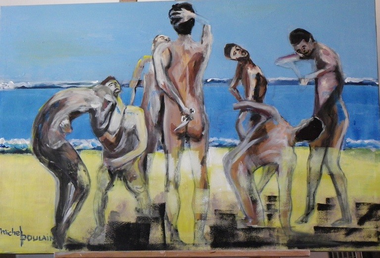 Acrylique sur toile 90x60 cm (tableau inachevé à l'instar de la tragédie grecque actuelle...)