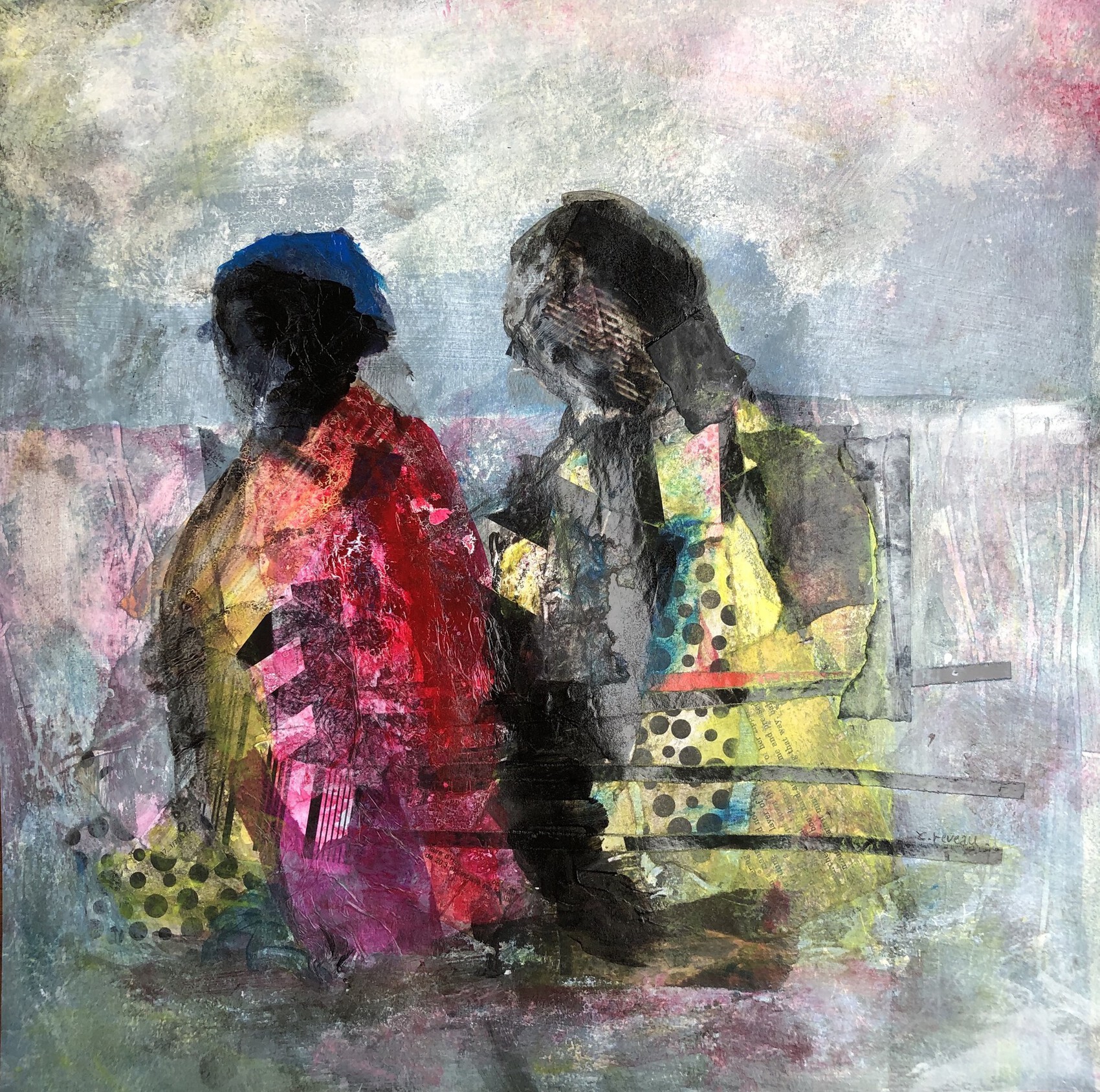 Acrylique, fusain, collages sur papier aquarelle 300gr. Oeuvre originale signé . Format 41,5 x 41,5cm à mettre sous-verre.