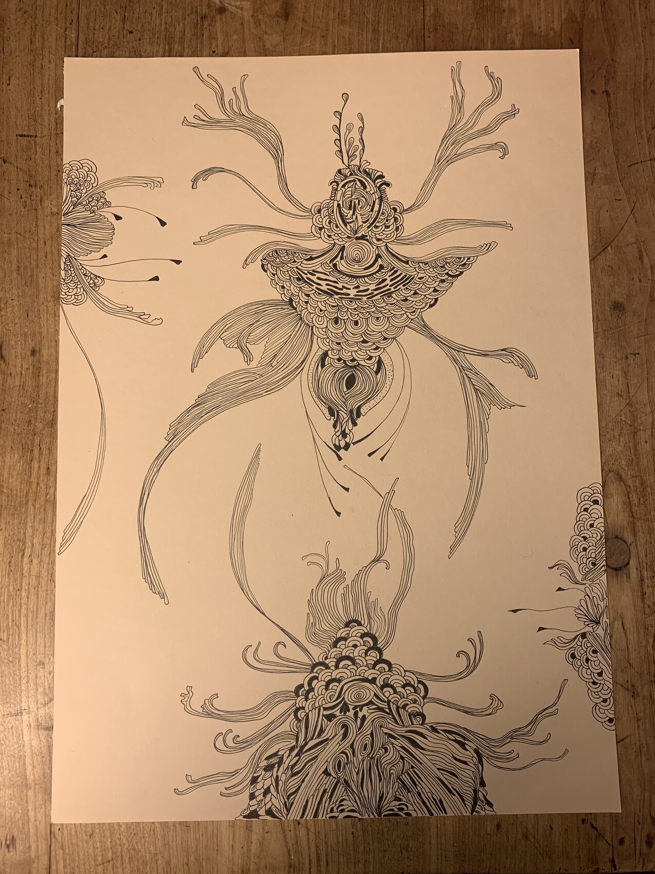 Abstraction marine T1 3/3. Feutre noir/ multi-techniques naturel 29,7x42. 2021/12