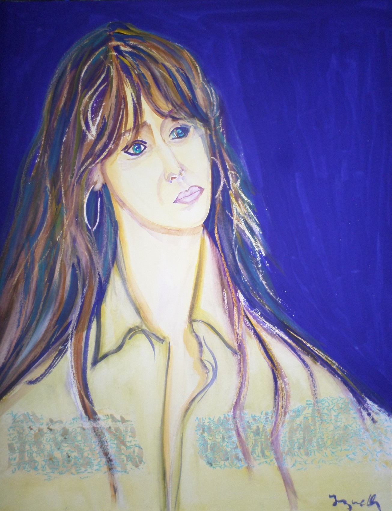 Moi,je lui trouve beaucoup de douceur,ne serait-ce que le coloris jaune paille choisi....les traits du visage sont tres beaux et doux aussi! beau portrait Jean-Paul
