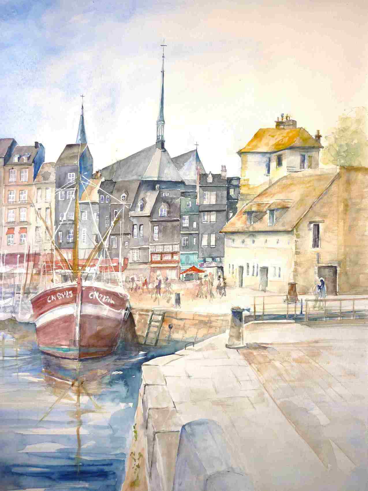 belle aquerelle où je reconnaît bien le vieux port d'honfleur