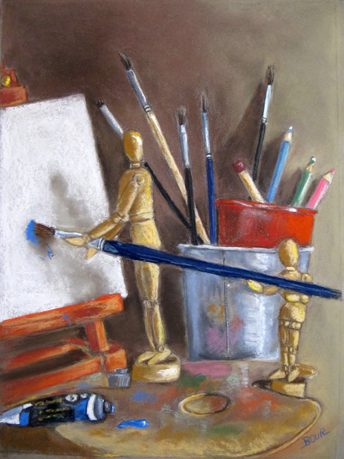 Bravo Anne pour ce pastel plein d'humour, avec ces reflets bien sentis sur le métal du pot à crayon. Une réussite !