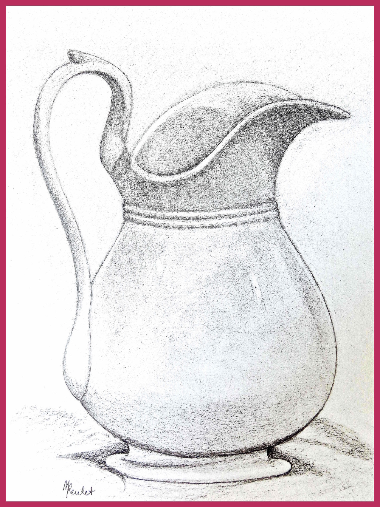 Crayon, novembre 2014, 29,7 x 21 cm. Dessin naturaliste. Entrainement pour apprendre à voir les valeurs de gris avec une cruche blanche sur fond blanc… Vous pouvez lire l'article de cette oeuvre sur mon blog Artnaturl https://wp.me/p6cBUn-VZ Muriel REULET === Pencil, 2014. Naturalistic drawing. A white jug with a white background drawed during a training session to learn seing the different gray values. On my blog Artnaturl, you can read the article about this work https://wp.me/p6cBUn-VZ