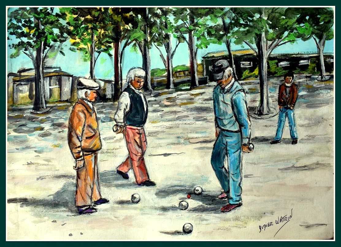 La vue de cette toile m'a tout de suite fait penser à la chanson : "Une partie de pétanque..." des jours d'été ensoleillés et une joie de vivre... Merci watrin91 Bon we..