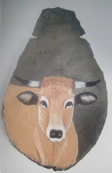 Vache aubrac sur ardoise