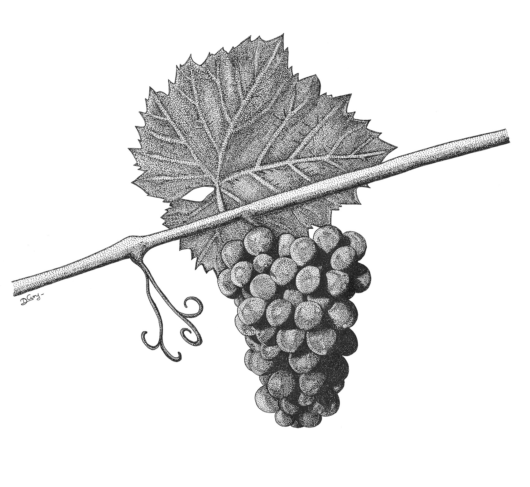 Les vendanges arrivent en Bourgogne, voici une grappe de raisin ! Encre de chine sur feuille A4