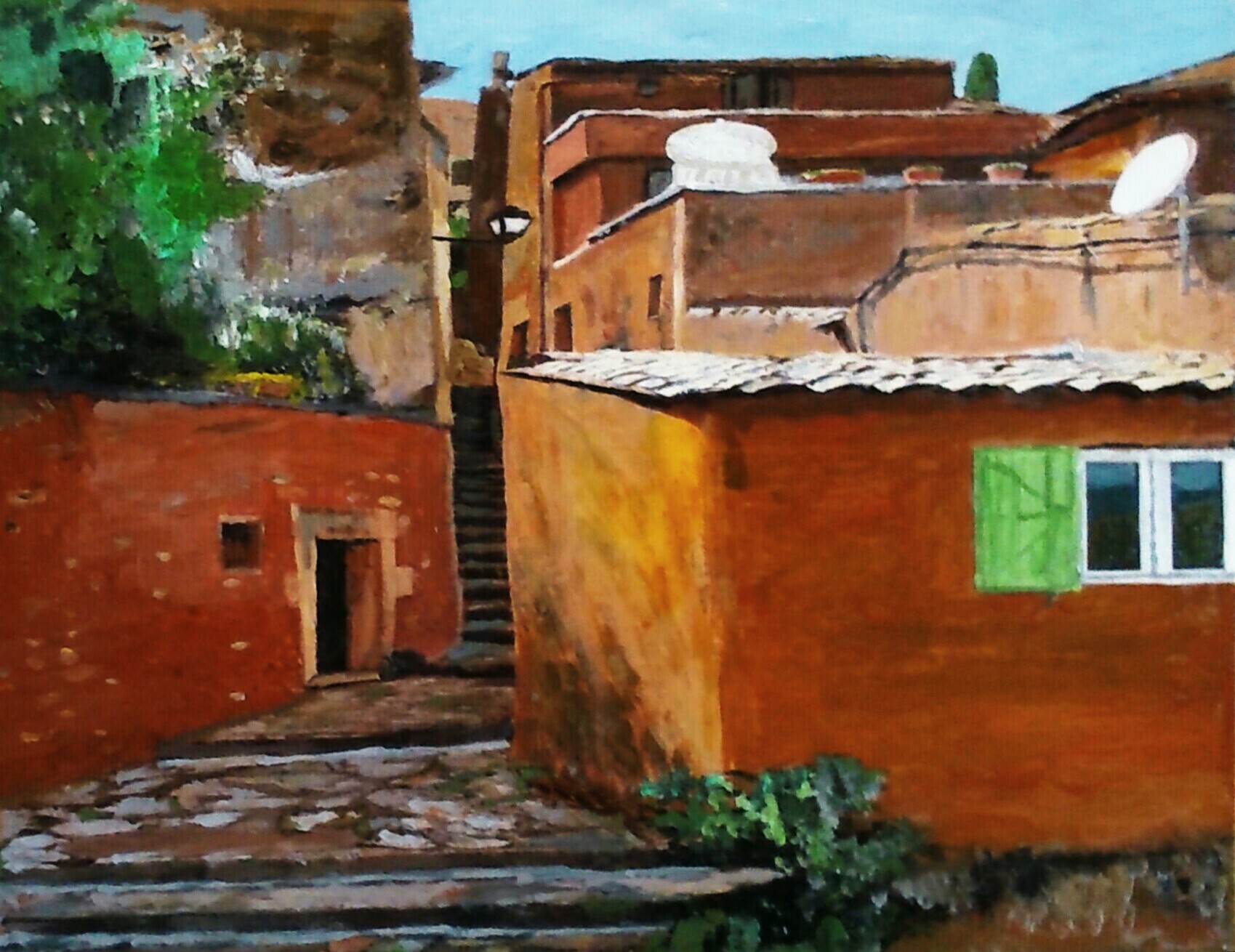 Venelle. Acrylique, toile carton 24 x 30 cm. Puissent les vallées devenir vos rues, les sentiers de verdure vos venelles, pour que vous vous cherchiez les uns les autres dans les vignes, et que vous en reveniez avec, dans vos vêtements, le parfum de la terre. (Khali Gibran) https://www.artpal.com/cothy-art1