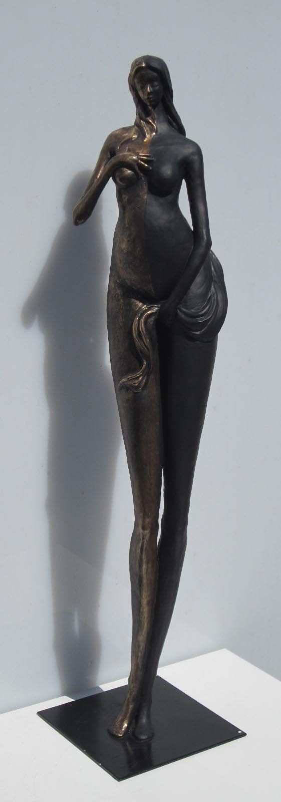Technique mixte. Socle acier Patine noire et bronze 55x13x13