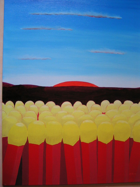 huile sur toile 80x60. Le soleil vient se faire "allumer" par les allumettes