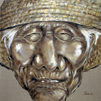 Visage du Vietnam (Asie). Acrylique sur toile - 80x80 cm