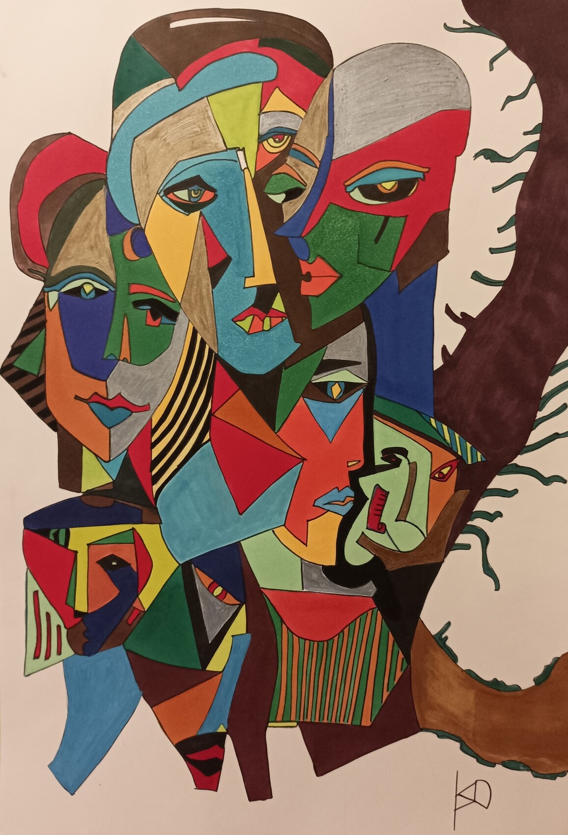 Dessin destructuré représentant la multiplication des visages.