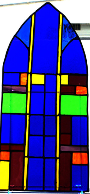 Vitrail moderne, posé sur un support 3d en option 25 euros. Dimension 65x30