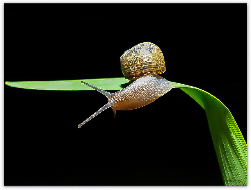 Superbe photo d'une grande pureté !! un escargot qui plane ... on dirait qu'il a des ailes!!!! bravo encore Dominique pour cette ptite merveille...amitiés