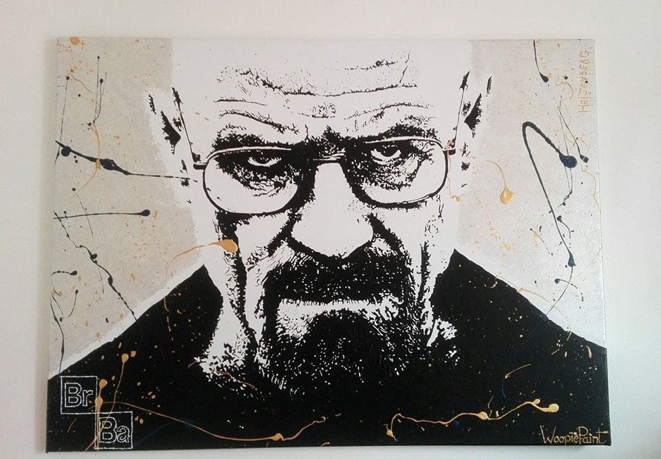 Il s'agit d'une toile 100% acrylique sur toile tendue en coton, elle mesure 60x80cm et est datée et signée par l'artiste. Possibilité de délivrer certificat d'authenticité avec la toile. Walter White est le personnage principal de la série américaine Breaking Bad. Cette oeuvre n'est pas en vente (sauf proposition adéquat de prix), ou possibilité de commande similaire ( jamais à l'identique)